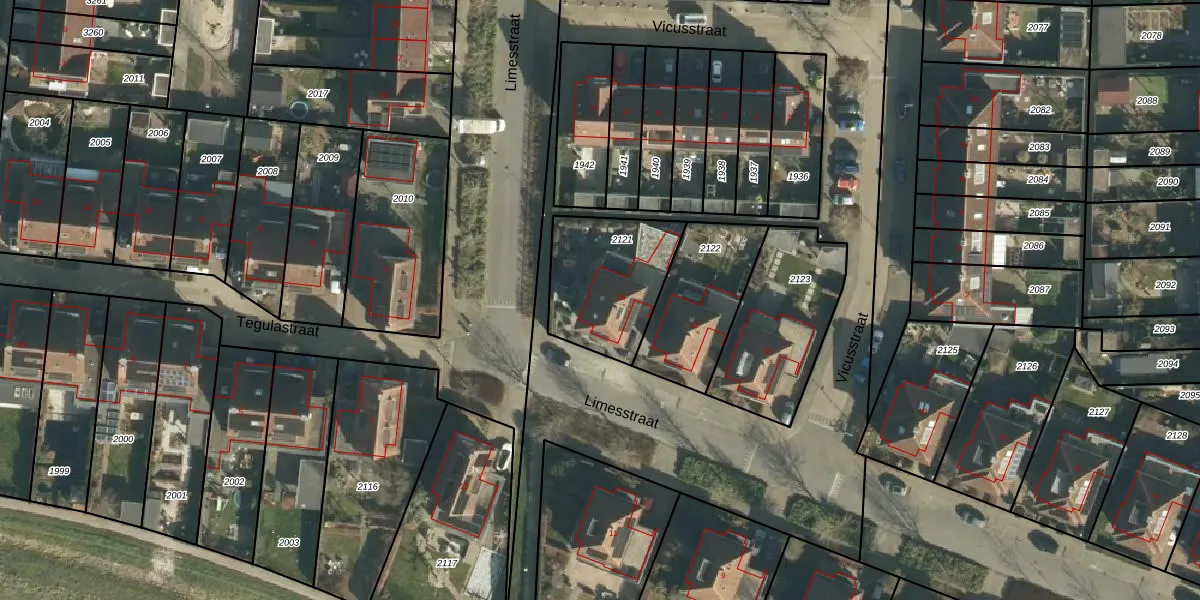 Het perceel waarop Limesstraat 16 staat heeft een oppervlakte van 414 m². Dit is een groot perceel. De perceeloppervlakte wordt geregistreerd door het Kadaster. Gedetailleerde informatie over de maten van dit perceel kunt u vinden in het rapport Kadastrale kaart met maatvoering van Limesstraat 16.