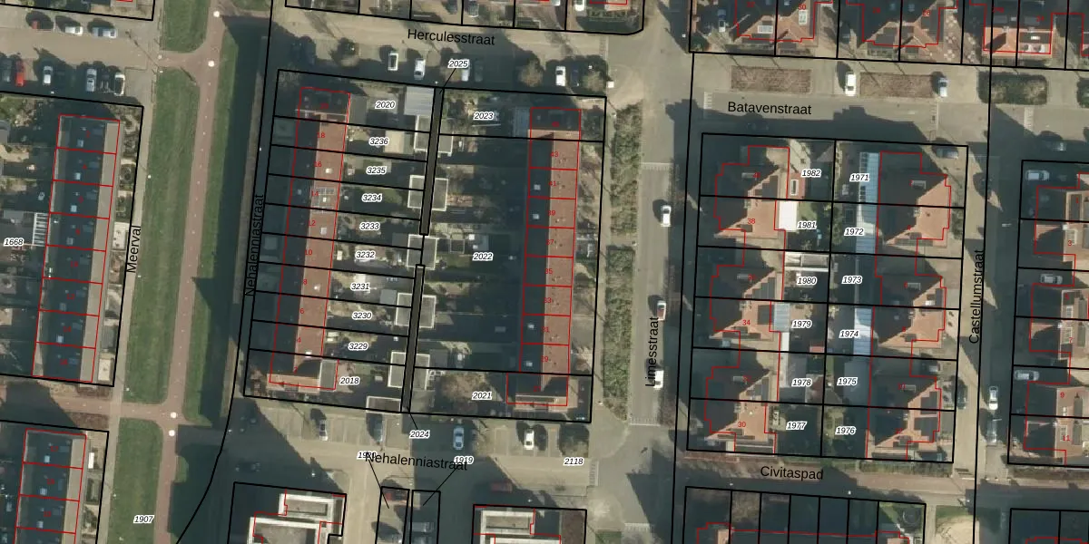 Het perceel waarop Limesstraat 35 staat heeft een oppervlakte van 1365 m². Dit is een zeer groot perceel. De perceeloppervlakte wordt geregistreerd door het Kadaster. Gedetailleerde informatie over de maten van dit perceel kunt u vinden in het rapport Kadastrale kaart met maatvoering van Limesstraat 35.
