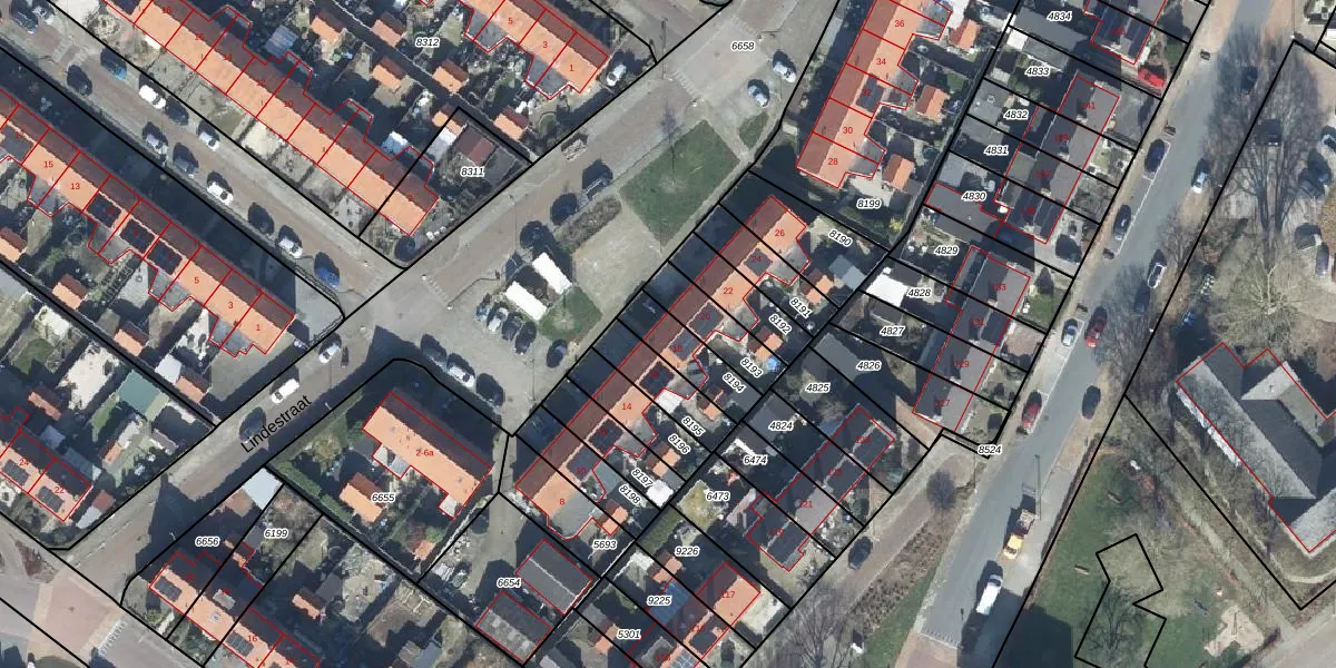 Lindestraat 18 is gelegen op kadastraal perceel TIE00C8194. Deze kadastrale aanduiding is uniek en wordt gebruikt door het Kadaster om eigendomsrechten en andere zakelijke rechten vast te leggen. Het perceel maakt onderdeel uit van de kadastrale gemeente Tiel.