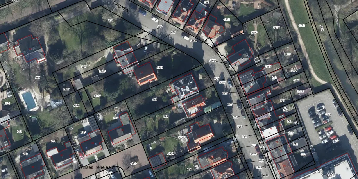Het perceel waarop Lingedijk 21 staat heeft een oppervlakte van 620 m². Dit is een groot perceel. De perceeloppervlakte wordt geregistreerd door het Kadaster. Gedetailleerde informatie over de maten van dit perceel kunt u vinden in het rapport Kadastrale kaart met maatvoering van Lingedijk 21.