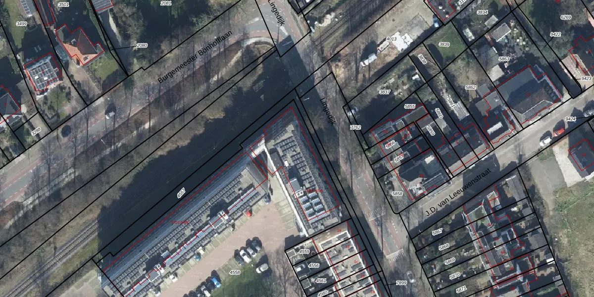 Het perceel waarop Lingedijk 3-25 staat heeft een oppervlakte van 3745 m². Dit is een zeer groot perceel. De perceeloppervlakte wordt geregistreerd door het Kadaster. Gedetailleerde informatie over de maten van dit perceel kunt u vinden in het rapport Kadastrale kaart met maatvoering van Lingedijk 3-25.