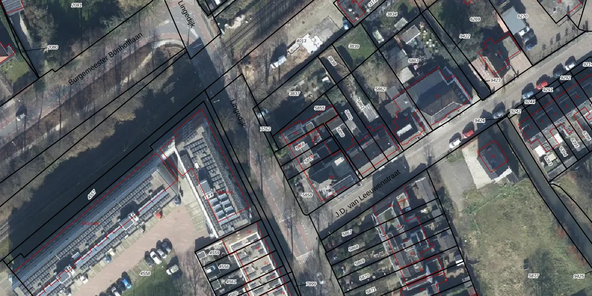 Het perceel waarop Lingedijk 54 staat heeft een oppervlakte van 99 m². Dit is een klein perceel. De perceeloppervlakte wordt geregistreerd door het Kadaster. Gedetailleerde informatie over de maten van dit perceel kunt u vinden in het rapport Kadastrale kaart met maatvoering van Lingedijk 54.