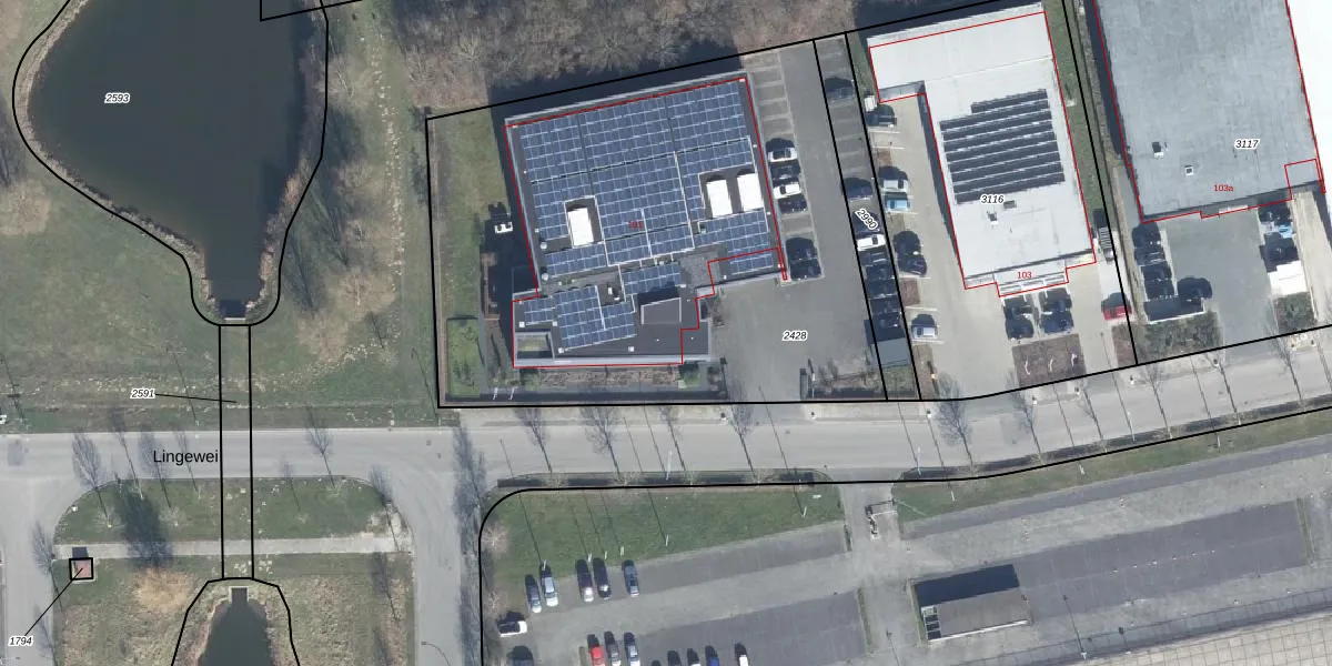 Het perceel waarop Lingewei 101 staat heeft een oppervlakte van 3102 m². Dit is een zeer groot perceel. De perceeloppervlakte wordt geregistreerd door het Kadaster. Gedetailleerde informatie over de maten van dit perceel kunt u vinden in het rapport Kadastrale kaart met maatvoering van Lingewei 101.