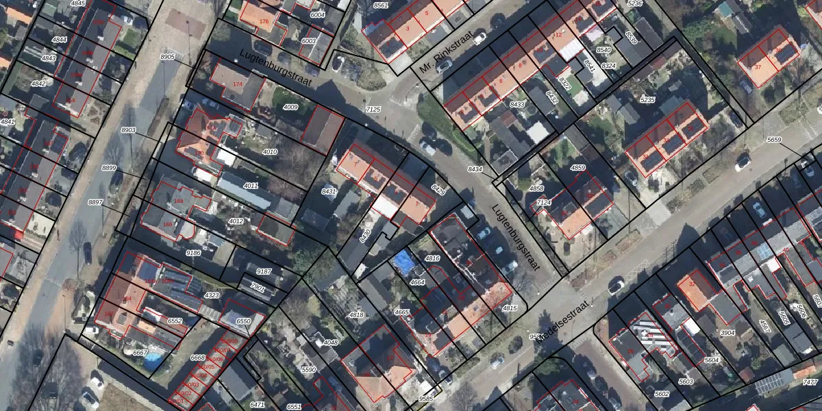Lugtenburgstraat 1 is gelegen op kadastraal perceel TIE00C8429. Deze kadastrale aanduiding is uniek en wordt gebruikt door het Kadaster om eigendomsrechten en andere zakelijke rechten vast te leggen. Het perceel maakt onderdeel uit van de kadastrale gemeente Tiel.