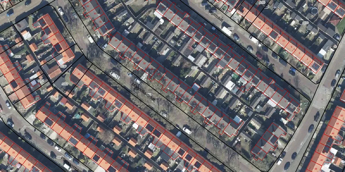 Het perceel waarop Magnoliastraat 18 staat heeft een oppervlakte van 7015 m². Dit is een zeer groot perceel. De perceeloppervlakte wordt geregistreerd door het Kadaster. Gedetailleerde informatie over de maten van dit perceel kunt u vinden in het rapport Kadastrale kaart met maatvoering van Magnoliastraat 18.