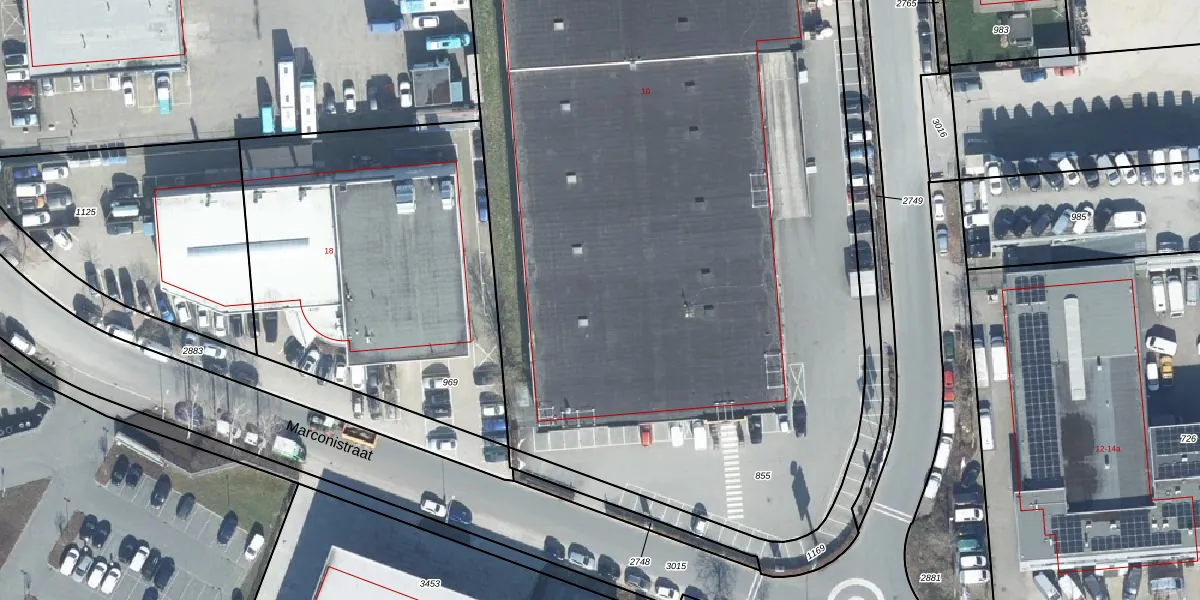 Het perceel waarop Marconistraat 16 staat heeft een oppervlakte van 7375 m². Dit is een zeer groot perceel. De perceeloppervlakte wordt geregistreerd door het Kadaster. Gedetailleerde informatie over de maten van dit perceel kunt u vinden in het rapport Kadastrale kaart met maatvoering van Marconistraat 16.