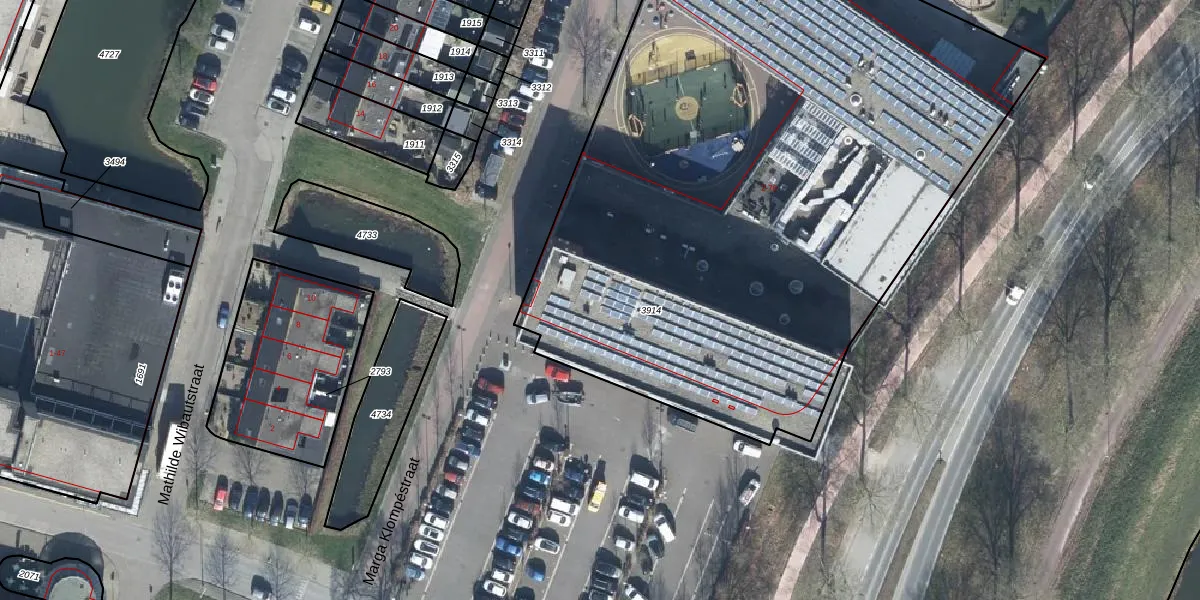 Het perceel waarop Marga Klompéstraat 26 staat heeft een oppervlakte van 4553 m². Dit is een zeer groot perceel. De perceeloppervlakte wordt geregistreerd door het Kadaster. Gedetailleerde informatie over de maten van dit perceel kunt u vinden in het rapport Kadastrale kaart met maatvoering van Marga Klompéstraat 26.