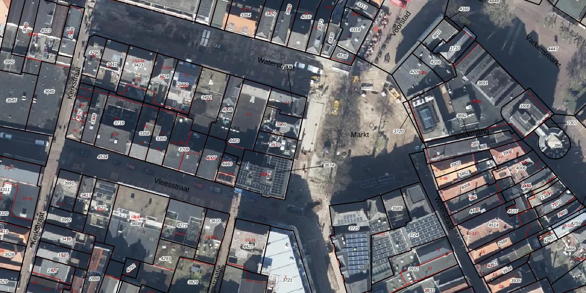 Het perceel waarop Markt 12 staat heeft een oppervlakte van 102 m². Dit is een middelgroot perceel. De perceeloppervlakte wordt geregistreerd door het Kadaster. Gedetailleerde informatie over de maten van dit perceel kunt u vinden in het rapport Kadastrale kaart met maatvoering van Markt 12.