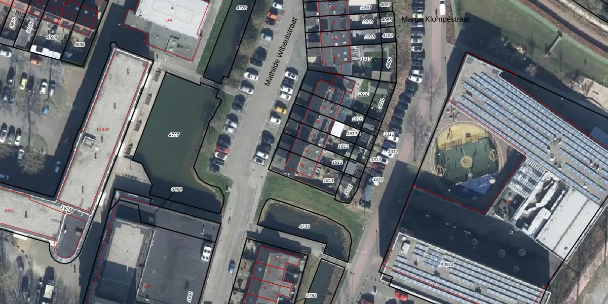 Mathilde Wibautstraat 16 is gelegen op kadastraal perceel TIE00H1912. Deze kadastrale aanduiding is uniek en wordt gebruikt door het Kadaster om eigendomsrechten en andere zakelijke rechten vast te leggen. Het perceel maakt onderdeel uit van de kadastrale gemeente Tiel.