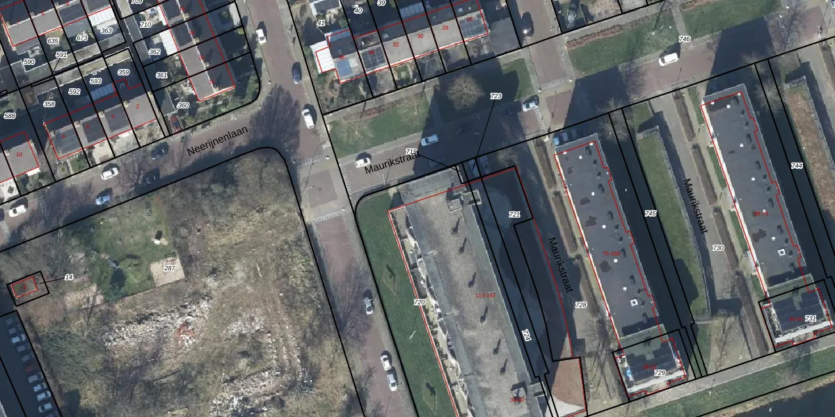 Maurikstraat 143 is gelegen op kadastraal perceel TIE00M720. Deze kadastrale aanduiding is uniek en wordt gebruikt door het Kadaster om eigendomsrechten en andere zakelijke rechten vast te leggen. Het perceel maakt onderdeel uit van de kadastrale gemeente Tiel.