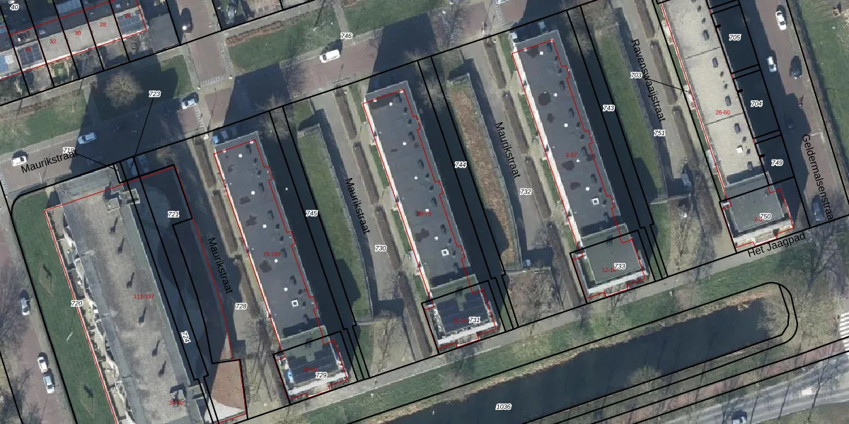 Het perceel waarop Maurikstraat 59 staat heeft een oppervlakte van 2079 m². Dit is een zeer groot perceel. De perceeloppervlakte wordt geregistreerd door het Kadaster. Gedetailleerde informatie over de maten van dit perceel kunt u vinden in het rapport Kadastrale kaart met maatvoering van Maurikstraat 59.