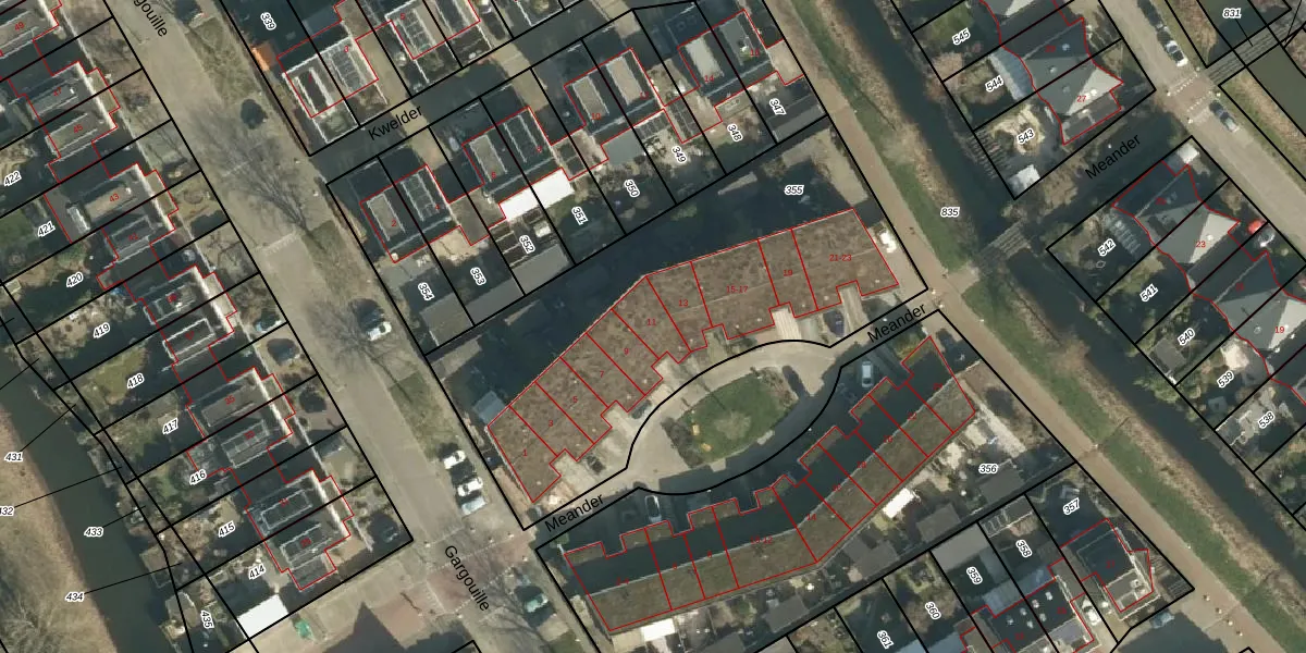 Het perceel waarop Meander 11 staat heeft een oppervlakte van 2035 m². Dit is een zeer groot perceel. De perceeloppervlakte wordt geregistreerd door het Kadaster. Gedetailleerde informatie over de maten van dit perceel kunt u vinden in het rapport Kadastrale kaart met maatvoering van Meander 11.