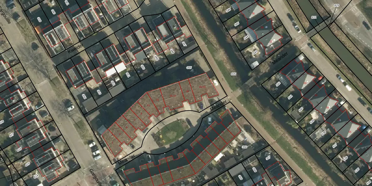Het perceel waarop Meander 19 staat heeft een oppervlakte van 2035 m². Dit is een zeer groot perceel. De perceeloppervlakte wordt geregistreerd door het Kadaster. Gedetailleerde informatie over de maten van dit perceel kunt u vinden in het rapport Kadastrale kaart met maatvoering van Meander 19.