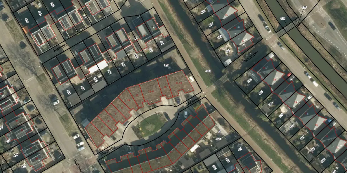 Het perceel waarop Meander 21 staat heeft een oppervlakte van 2035 m². Dit is een zeer groot perceel. De perceeloppervlakte wordt geregistreerd door het Kadaster. Gedetailleerde informatie over de maten van dit perceel kunt u vinden in het rapport Kadastrale kaart met maatvoering van Meander 21.