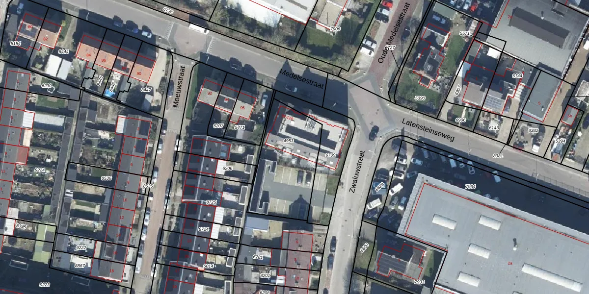 Medelsestraat 108 is gelegen op kadastraal perceel TIE00C4953. Deze kadastrale aanduiding is uniek en wordt gebruikt door het Kadaster om eigendomsrechten en andere zakelijke rechten vast te leggen. Het perceel maakt onderdeel uit van de kadastrale gemeente Tiel.