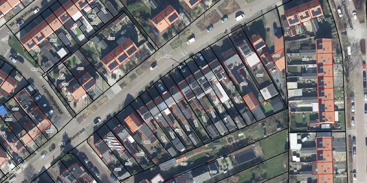 Gebruik de zoekbalk of klik op een perceel voor informatie over de adressen binnen dit perceel.