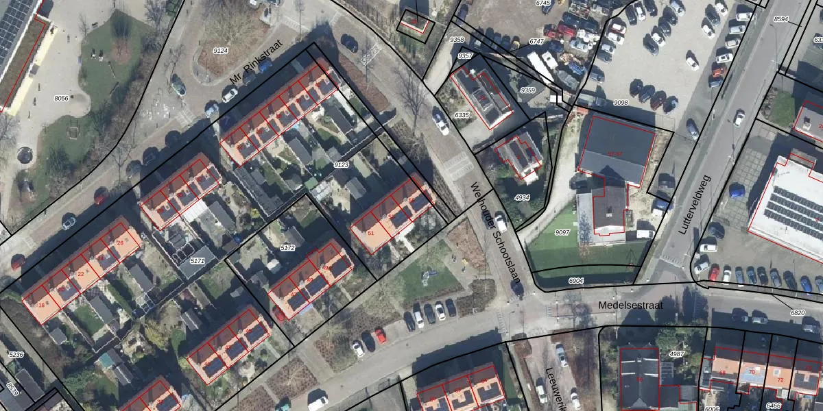 Het perceel waarop Medelsestraat 55 staat heeft een oppervlakte van 4670 m². Dit is een zeer groot perceel. De perceeloppervlakte wordt geregistreerd door het Kadaster. Gedetailleerde informatie over de maten van dit perceel kunt u vinden in het rapport Kadastrale kaart met maatvoering van Medelsestraat 55.