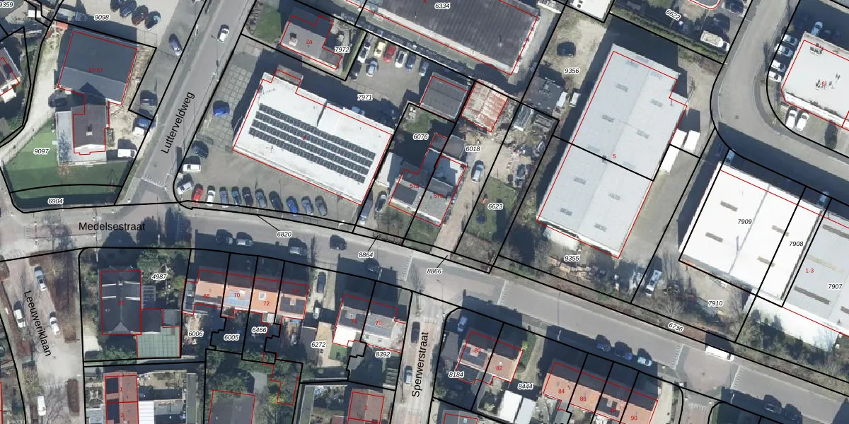 Het perceel waarop Medelsestraat 57-b staat heeft een oppervlakte van 490 m². Dit is een groot perceel. De perceeloppervlakte wordt geregistreerd door het Kadaster. Gedetailleerde informatie over de maten van dit perceel kunt u vinden in het rapport Kadastrale kaart met maatvoering van Medelsestraat 57-b.