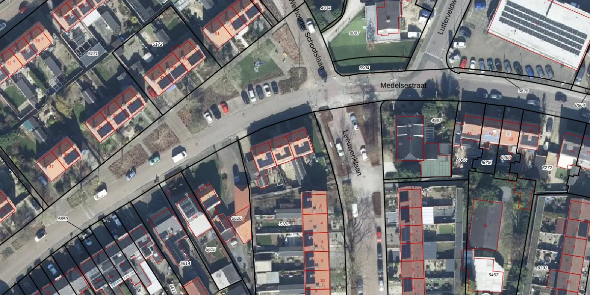 Het perceel waarop Medelsestraat 64 staat heeft een oppervlakte van 2235 m². Dit is een zeer groot perceel. De perceeloppervlakte wordt geregistreerd door het Kadaster. Gedetailleerde informatie over de maten van dit perceel kunt u vinden in het rapport Kadastrale kaart met maatvoering van Medelsestraat 64.