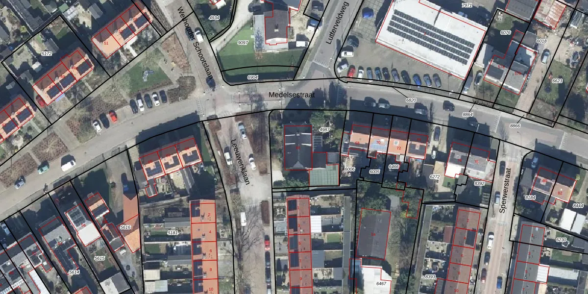 Het perceel waarop Medelsestraat 66 staat heeft een oppervlakte van 635 m². Dit is een groot perceel. De perceeloppervlakte wordt geregistreerd door het Kadaster. Gedetailleerde informatie over de maten van dit perceel kunt u vinden in het rapport Kadastrale kaart met maatvoering van Medelsestraat 66.