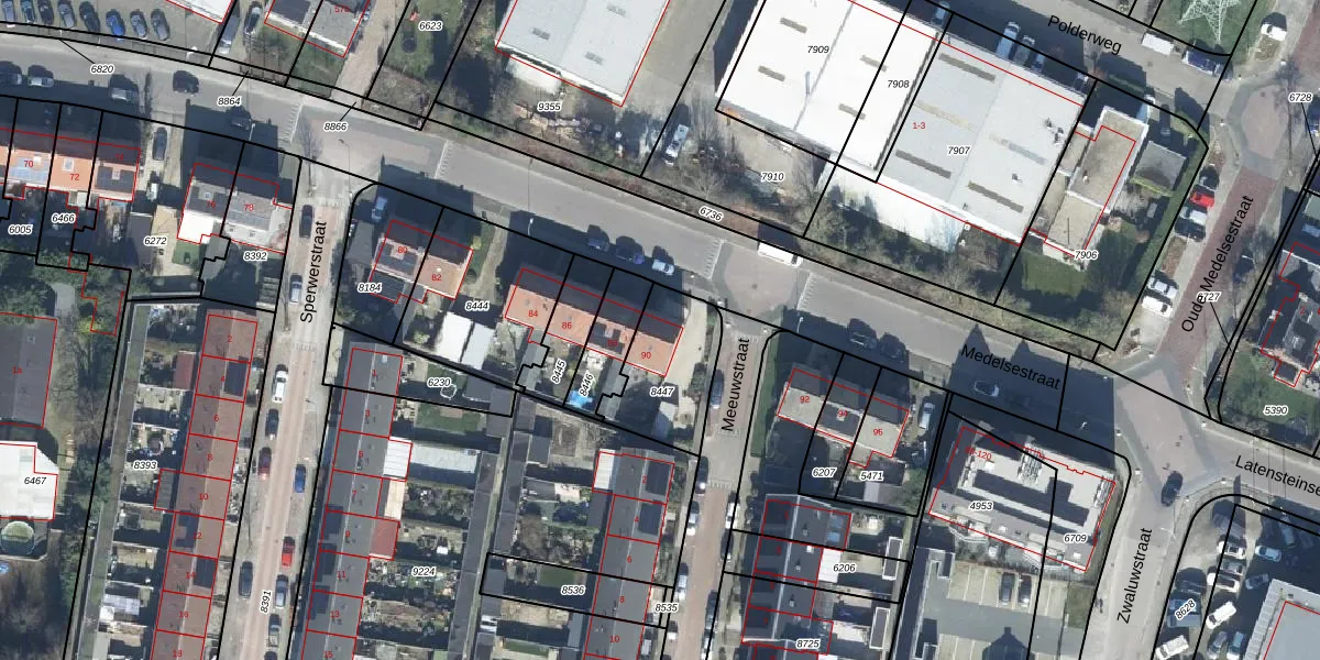 Medelsestraat 90 is gelegen op kadastraal perceel TIE00C8447. Deze kadastrale aanduiding is uniek en wordt gebruikt door het Kadaster om eigendomsrechten en andere zakelijke rechten vast te leggen. Het perceel maakt onderdeel uit van de kadastrale gemeente Tiel.