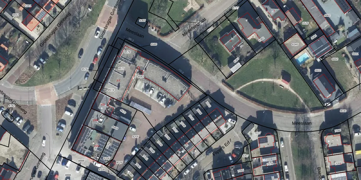 Het perceel waarop Meeslaan 2-18 staat heeft een oppervlakte van 1415 m². Dit is een zeer groot perceel. De perceeloppervlakte wordt geregistreerd door het Kadaster. Gedetailleerde informatie over de maten van dit perceel kunt u vinden in het rapport Kadastrale kaart met maatvoering van Meeslaan 2-18.