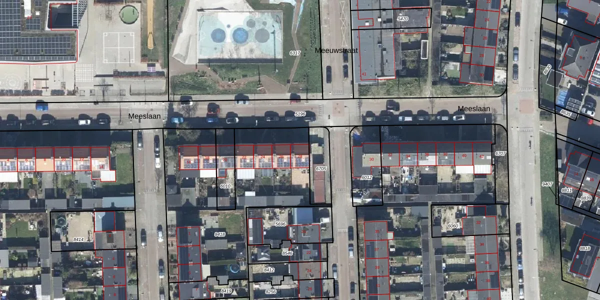 Het perceel waarop Meeslaan 28 staat heeft een oppervlakte van 1780 m². Dit is een zeer groot perceel. De perceeloppervlakte wordt geregistreerd door het Kadaster. Gedetailleerde informatie over de maten van dit perceel kunt u vinden in het rapport Kadastrale kaart met maatvoering van Meeslaan 28.