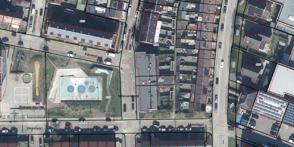 Het perceel waarop Meeuwstraat 29-12 staat heeft een oppervlakte van 3038 m². Dit is een zeer groot perceel. De perceeloppervlakte wordt geregistreerd door het Kadaster. Gedetailleerde informatie over de maten van dit perceel kunt u vinden in het rapport Kadastrale kaart met maatvoering van Meeuwstraat 29-12.
