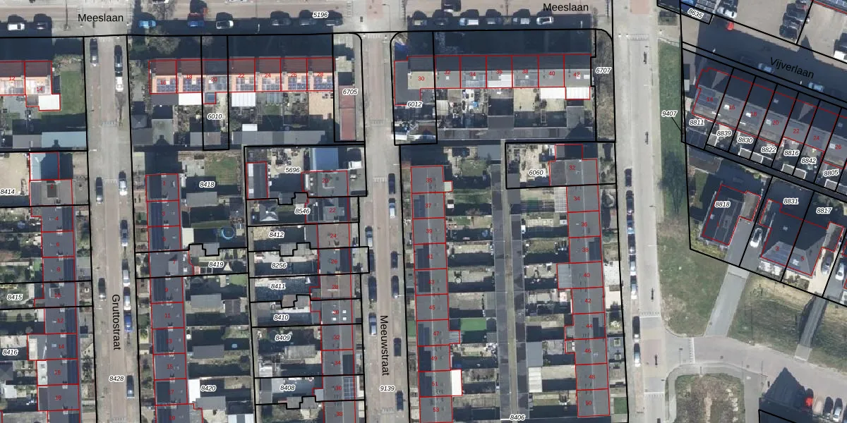 Het perceel waarop Meeuwstraat 37 staat heeft een oppervlakte van 7301 m². Dit is een zeer groot perceel. De perceeloppervlakte wordt geregistreerd door het Kadaster. Gedetailleerde informatie over de maten van dit perceel kunt u vinden in het rapport Kadastrale kaart met maatvoering van Meeuwstraat 37.