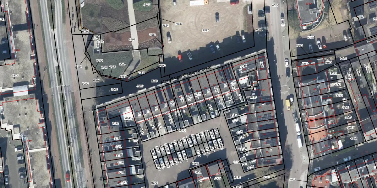Melvill van Carnbeestraat 16 is gelegen op kadastraal perceel TIE00C8237. Deze kadastrale aanduiding is uniek en wordt gebruikt door het Kadaster om eigendomsrechten en andere zakelijke rechten vast te leggen. Het perceel maakt onderdeel uit van de kadastrale gemeente Tiel.