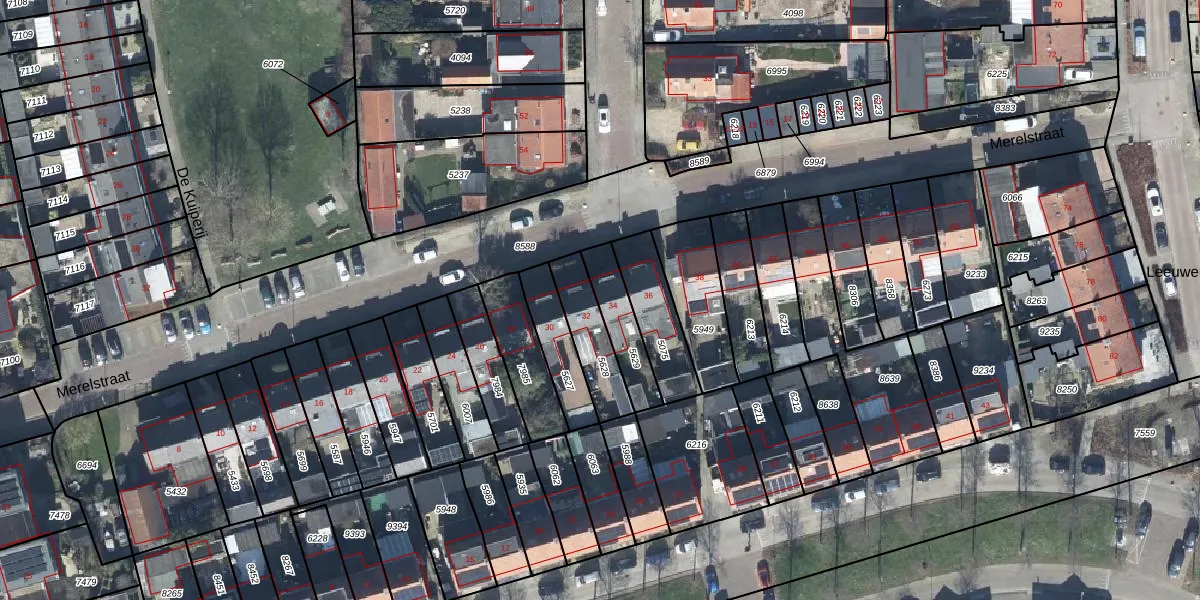 Het perceel waarop Merelstraat 34 staat heeft een oppervlakte van 155 m². Dit is een middelgroot perceel. De perceeloppervlakte wordt geregistreerd door het Kadaster. Gedetailleerde informatie over de maten van dit perceel kunt u vinden in het rapport Kadastrale kaart met maatvoering van Merelstraat 34.