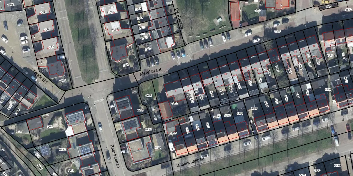Het perceel waarop Merelstraat 8 staat heeft een oppervlakte van 399 m². Dit is een groot perceel. De perceeloppervlakte wordt geregistreerd door het Kadaster. Gedetailleerde informatie over de maten van dit perceel kunt u vinden in het rapport Kadastrale kaart met maatvoering van Merelstraat 8.