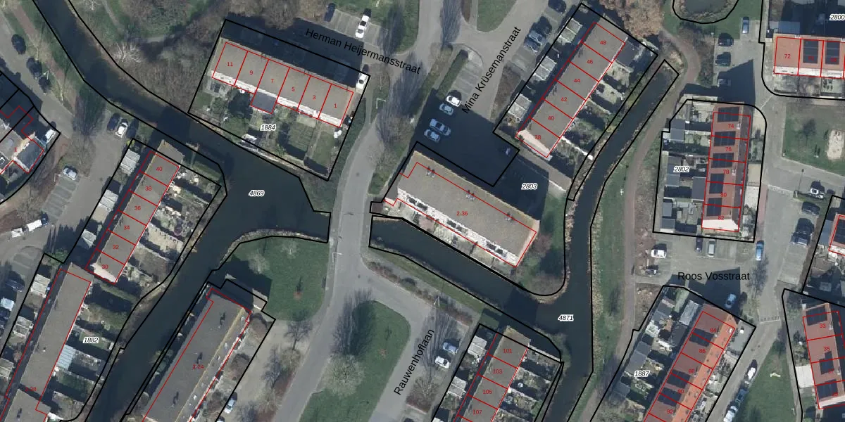 Het perceel waarop Mina Krüsemanstraat 18 staat heeft een oppervlakte van 1740 m². Dit is een zeer groot perceel. De perceeloppervlakte wordt geregistreerd door het Kadaster. Gedetailleerde informatie over de maten van dit perceel kunt u vinden in het rapport Kadastrale kaart met maatvoering van Mina Krüsemanstraat 18.