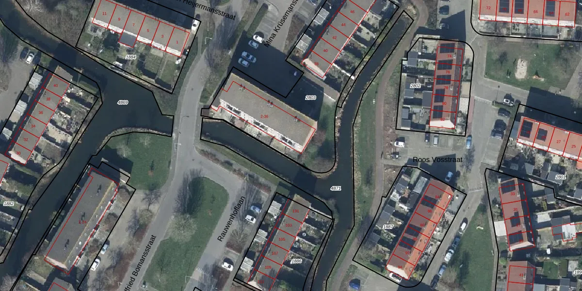 Het perceel waarop Mina Krüsemanstraat 34 staat heeft een oppervlakte van 1740 m². Dit is een zeer groot perceel. De perceeloppervlakte wordt geregistreerd door het Kadaster. Gedetailleerde informatie over de maten van dit perceel kunt u vinden in het rapport Kadastrale kaart met maatvoering van Mina Krüsemanstraat 34.