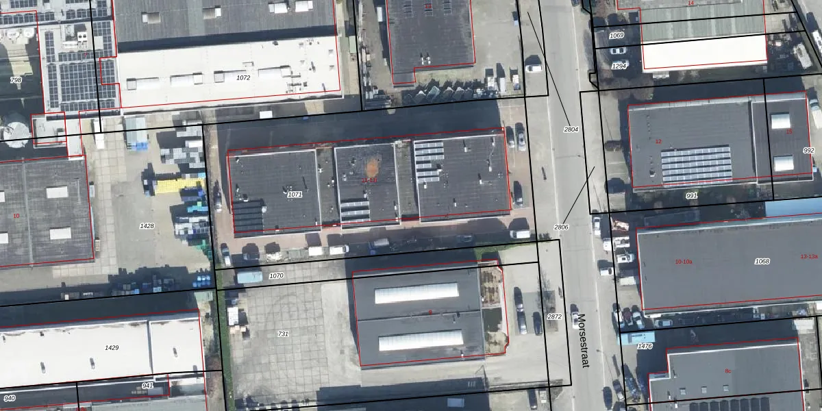 Het perceel waarop Morsestraat 11-q staat heeft een oppervlakte van 2800 m². Dit is een zeer groot perceel. De perceeloppervlakte wordt geregistreerd door het Kadaster. Gedetailleerde informatie over de maten van dit perceel kunt u vinden in het rapport Kadastrale kaart met maatvoering van Morsestraat 11-q.