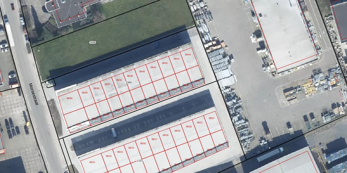 Morsestraat 38-31 is gelegen op kadastraal perceel TIE00L3384. Deze kadastrale aanduiding is uniek en wordt gebruikt door het Kadaster om eigendomsrechten en andere zakelijke rechten vast te leggen. Het perceel maakt onderdeel uit van de kadastrale gemeente Tiel.