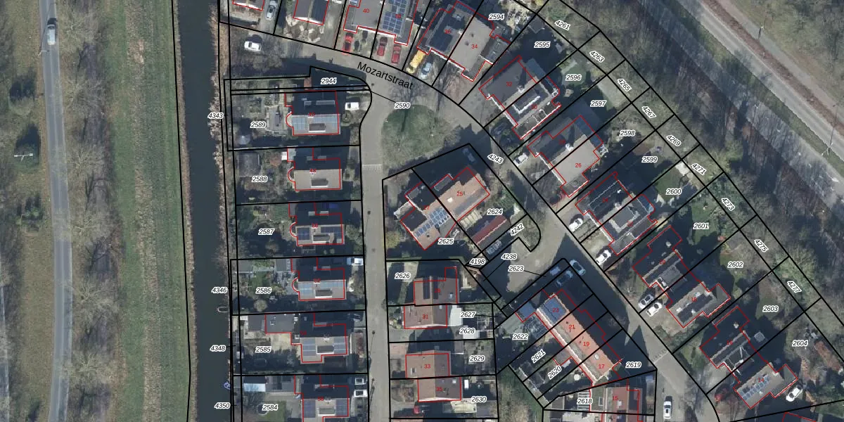 Mozartstraat 27 is gelegen op kadastraal perceel TIE00H2625. Deze kadastrale aanduiding is uniek en wordt gebruikt door het Kadaster om eigendomsrechten en andere zakelijke rechten vast te leggen. Het perceel maakt onderdeel uit van de kadastrale gemeente Tiel.