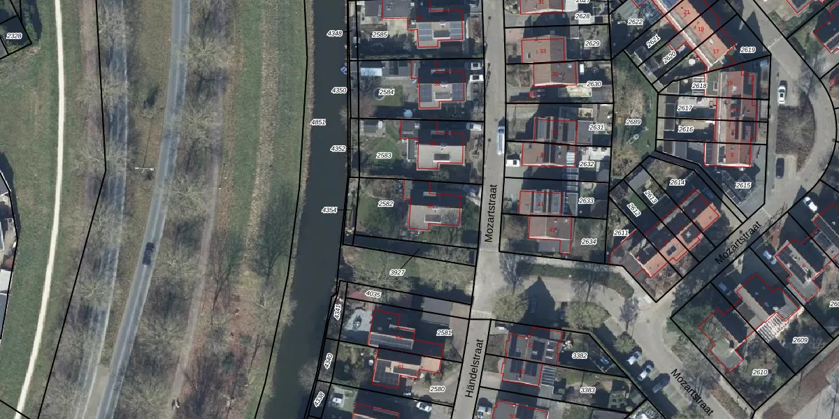 Het adres is gelegen op perceel 2582 in de sectie H en de kadastrale gemeente Tiel. De kadastrale aanduiding is aldus TIE00-H-2582. De gemiddelde perceelgrootte in Tiel is 1546,7 m². Dit perceel is kleiner: de perceeloppervlakte bedraagt 432 m². Het kleinste perceel in de kadastrale gemeente is 0 m² groot. De grootste perceeloppervlakte is 26,3 ha. Op het perceel bevinden zich geen andere adressen. In de Basisregistratie Kadaster (BRK) werden de grenzen van het perceel geregistreerd op 10-03-2010.