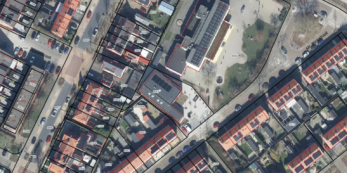 Gebruik de zoekbalk of klik op een perceel voor informatie over de adressen binnen dit perceel.