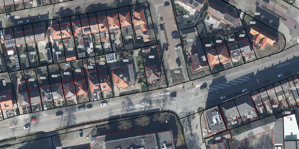 Mr. Troelstrastraat 1 is gelegen op kadastraal perceel TIE00D3157. Deze kadastrale aanduiding is uniek en wordt gebruikt door het Kadaster om eigendomsrechten en andere zakelijke rechten vast te leggen. Het perceel maakt onderdeel uit van de kadastrale gemeente Tiel.