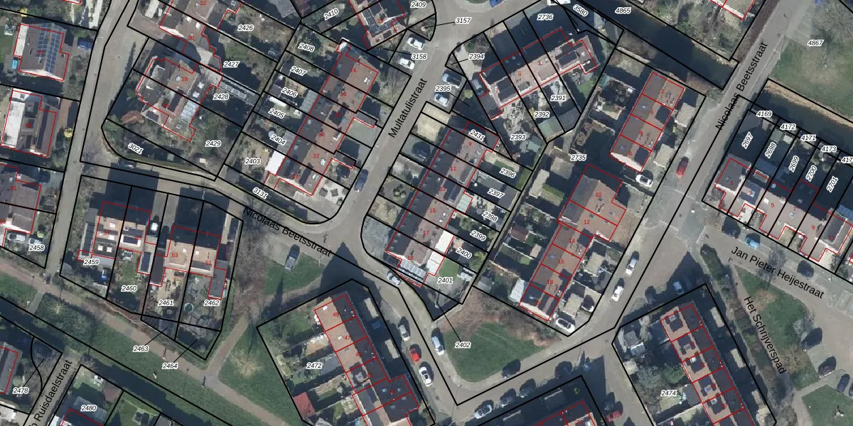 Het perceel waarop Multatulistraat 15 staat heeft een oppervlakte van 162 m². Dit is een middelgroot perceel. De perceeloppervlakte wordt geregistreerd door het Kadaster. Gedetailleerde informatie over de maten van dit perceel kunt u vinden in het rapport Kadastrale kaart met maatvoering van Multatulistraat 15.