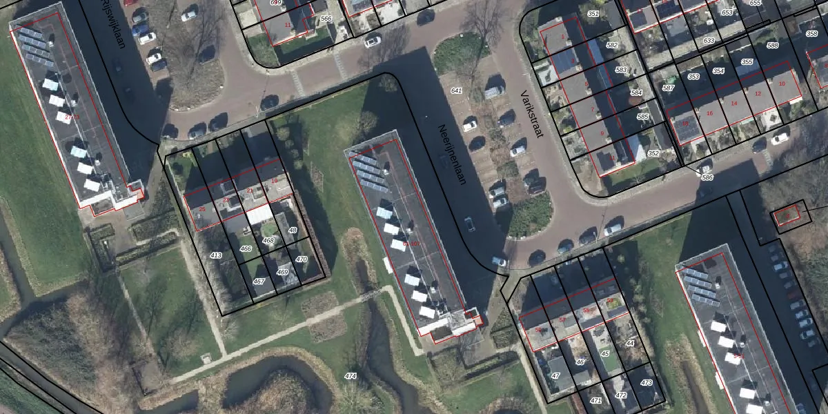 Het perceel waarop Neerijnenlaan 61-10 staat heeft een oppervlakte van 1,5 ha. Dit is een zeer groot perceel. De perceeloppervlakte wordt geregistreerd door het Kadaster. Gedetailleerde informatie over de maten van dit perceel kunt u vinden in het rapport Kadastrale kaart met maatvoering van Neerijnenlaan 61-10.