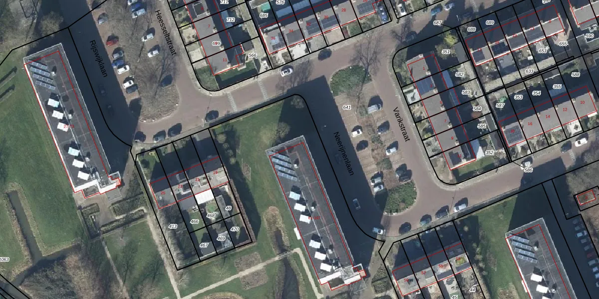 Het perceel waarop Neerijnenlaan 61-15 staat heeft een oppervlakte van 1,5 ha. Dit is een zeer groot perceel. De perceeloppervlakte wordt geregistreerd door het Kadaster. Gedetailleerde informatie over de maten van dit perceel kunt u vinden in het rapport Kadastrale kaart met maatvoering van Neerijnenlaan 61-15.