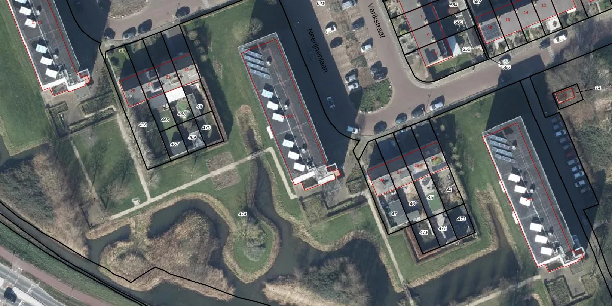 Het perceel waarop Neerijnenlaan 63 staat heeft een oppervlakte van 1,5 ha. Dit is een zeer groot perceel. De perceeloppervlakte wordt geregistreerd door het Kadaster. Gedetailleerde informatie over de maten van dit perceel kunt u vinden in het rapport Kadastrale kaart met maatvoering van Neerijnenlaan 63.