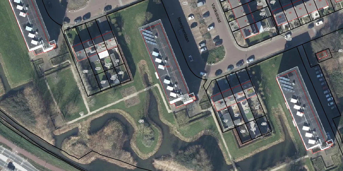 Het perceel waarop Neerijnenlaan 75 staat heeft een oppervlakte van 1,5 ha. Dit is een zeer groot perceel. De perceeloppervlakte wordt geregistreerd door het Kadaster. Gedetailleerde informatie over de maten van dit perceel kunt u vinden in het rapport Kadastrale kaart met maatvoering van Neerijnenlaan 75.