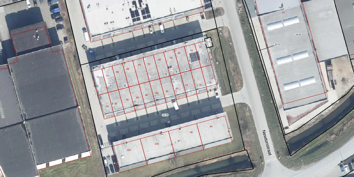 Het perceel waarop Newtonstraat 80 staat heeft een oppervlakte van 5681 m². Dit is een zeer groot perceel. De perceeloppervlakte wordt geregistreerd door het Kadaster. Gedetailleerde informatie over de maten van dit perceel kunt u vinden in het rapport Kadastrale kaart met maatvoering van Newtonstraat 80.
