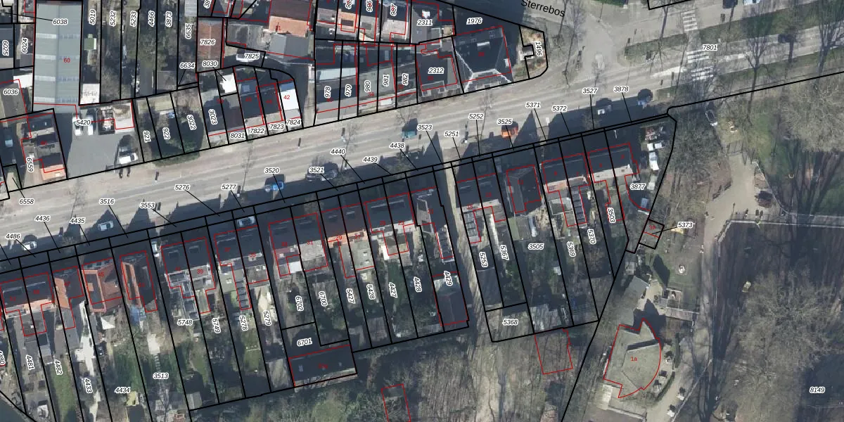 Gebruik de zoekbalk of klik op een perceel voor informatie over de adressen binnen dit perceel.