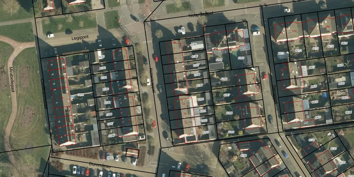 Notarisappel 11 is gelegen op kadastraal perceel TIE00D6199. Deze kadastrale aanduiding is uniek en wordt gebruikt door het Kadaster om eigendomsrechten en andere zakelijke rechten vast te leggen. Het perceel maakt onderdeel uit van de kadastrale gemeente Tiel.