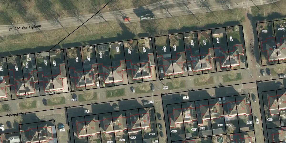 Het perceel waarop Notarisappel 216 staat heeft een oppervlakte van 305 m². Dit is een groot perceel. De perceeloppervlakte wordt geregistreerd door het Kadaster. Gedetailleerde informatie over de maten van dit perceel kunt u vinden in het rapport Kadastrale kaart met maatvoering van Notarisappel 216.