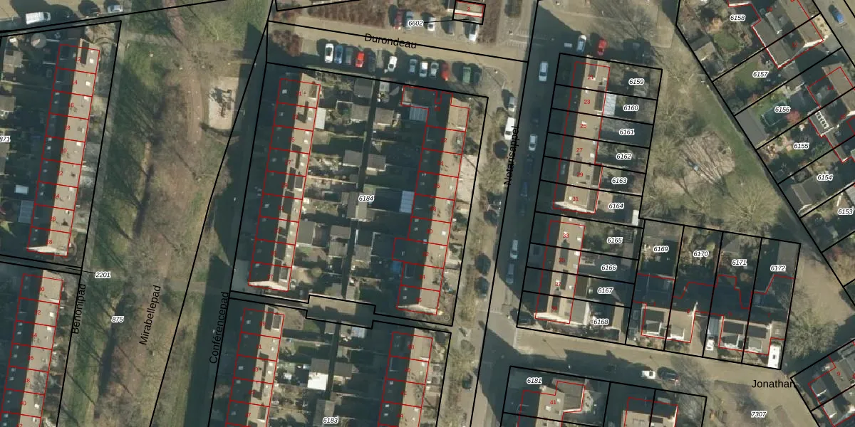 Het adres is gelegen op perceel 6184 in de sectie D en de kadastrale gemeente Tiel. De kadastrale aanduiding is aldus TIE00-D-6184. De oppervlakte van het perceel is 2870 m². Dat is groter dan gemiddeld in Tiel, waar de gemiddelde perceeloppervlakte op 1546,61 m² ligt. Het grootste perceel in de kadastrale gemeente is 26,3 ha. Het kleinste perceel heeft een oppervlakte van 0 m². Op het perceel zijn 18 adressen aanwezig. In de Basisregistratie Kadaster (BRK) werden de grenzen van het perceel geregistreerd op 06-04-2004.